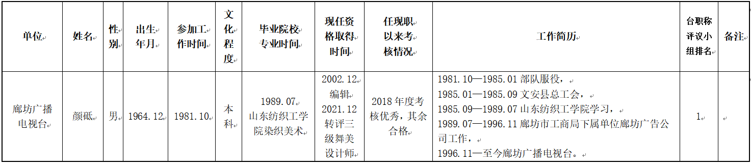 摘要:公 示 現(xiàn)將2022年度推薦申報高級專業(yè)技術職務任職資格人員情況公示如下,如有異議,請與廊坊廣播電視臺人力資源中心聯(lián)系。聯(lián)系人:王淑...