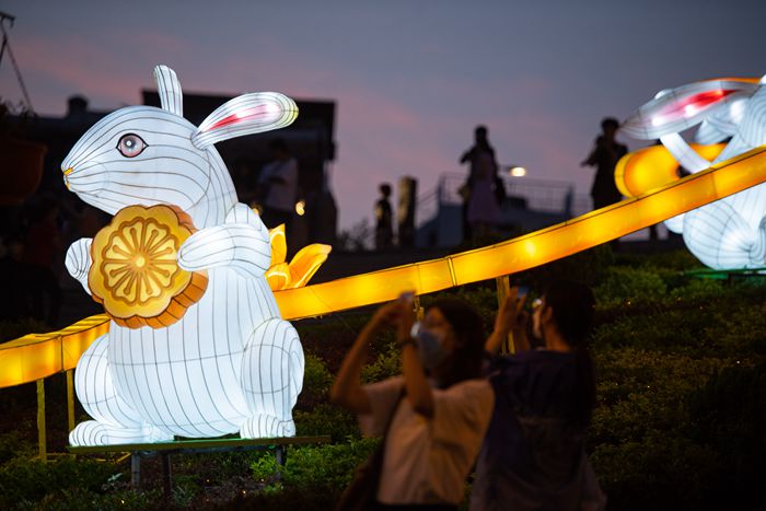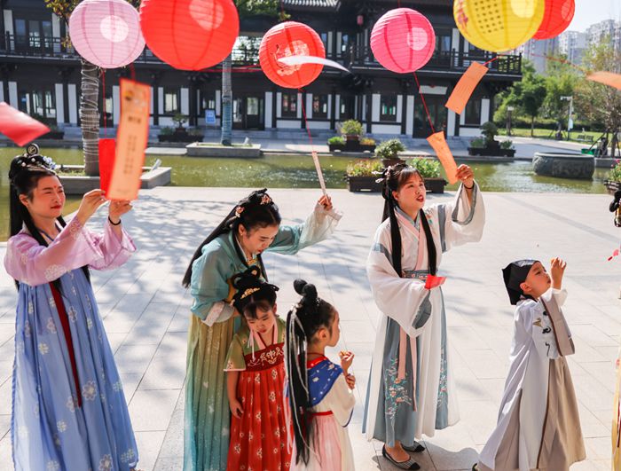 9月6日,漢服愛好者們?cè)诎不帐』幢笔星『_展“我們的節(jié)日·中秋”主題活動(dòng)。新華社發(fā)(王文攝)