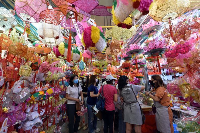中秋節(jié)臨近,香港元朗大橋街市化身為一年一度的“燈籠街”,各式各樣的手工燈籠掛滿街頭。這是9月2日,市民在香港元朗大橋街市選購(gòu)燈籠。新華社記者盧炳輝攝