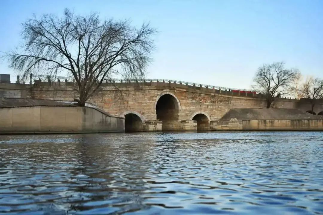 大運河在通州境內(nèi)長達 42 公里,古時南來北往的船只、游客于這里的河面和碼頭上匯聚,使這里不僅形成了無數(shù)客棧、酒肆和糧倉,還造就了運河上最為壯麗的景觀。中秋之夜,三孔橋洞中各映著一輪明月,皎潔天空中月如銀盤,清清河水中月影浮動,水月交輝,襯托潔白如玉的長橋,使人疑在畫中。這幅美景是通州的長橋映月景觀,造就這一景致的橋正是赫赫有名的永通橋。因位于“州城西行八里許”,永通橋又被稱為八里橋。八里橋最初為木橋,夜以繼日的運輸與不絕如縷的車隊使這座木橋不堪重負。1446年,明英宗下令將木橋改建為石拱橋,并賜名“永通橋”,取永遠通暢無阻之義。通惠河運糧船多為帆船,如建造普通形式拱橋勢必阻礙漕船航行,八里橋?qū)⒅锌捉ㄔ斓孟喈敻呗?,漕船可直出直入,因此?ldquo;八里橋不落桅”之說。