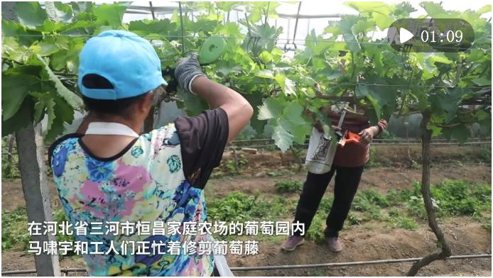 在河北省三河市恒昌家庭農(nóng)場的葡萄園內(nèi),馬嘯宇和工人們正忙著修剪葡萄藤。2015年,馬嘯宇畢業(yè)于華中農(nóng)業(yè)大學(xué)動(dòng)物醫(yī)學(xué)專業(yè),他放棄了培訓(xùn)講師的工作回鄉(xiāng)創(chuàng)業(yè),進(jìn)行葡萄種植。經(jīng)過8年努力,馬嘯宇已成為一名愛農(nóng)業(yè)、懂技術(shù)、善經(jīng)營的新農(nóng)人。如今,他的葡萄園年收入能達(dá)到50余萬元,還有效帶動(dòng)了30余名周邊村民就近就業(yè)。