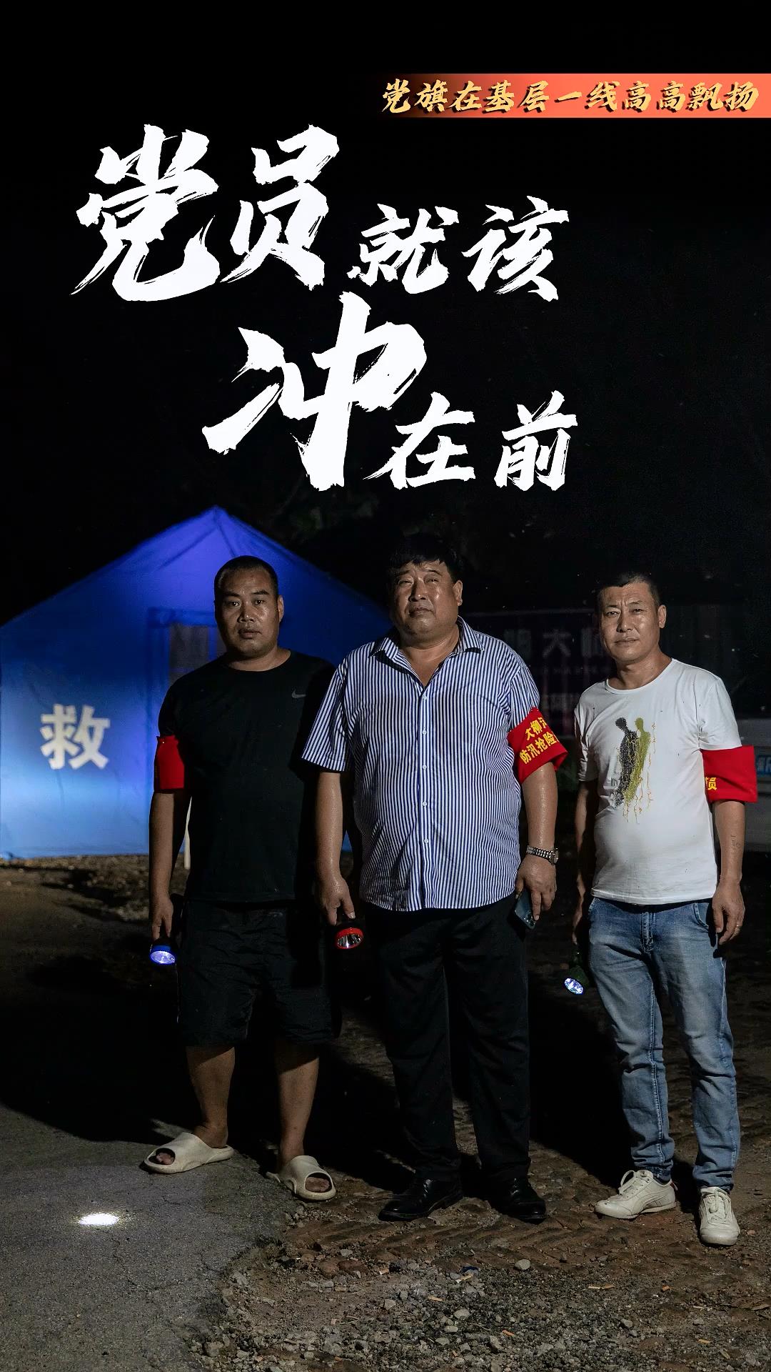 放下電話,和陳忠利一起執(zhí)勤的村委會委員陳延達就主動請纓:讓我?guī)巳グ?!這時候,突擊隊的黨員們爭先加入:我也去!還有我!由黨員和志愿者共13人組成的搶險救援小隊第一時間集結(jié)完畢。