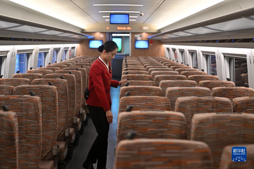 11月23日,客運(yùn)員在運(yùn)行試驗(yàn)車的車廂內(nèi)巡查。