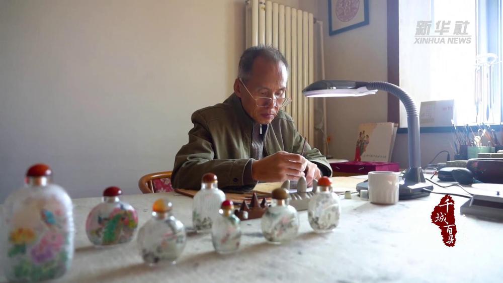 鼻煙壺內(nèi)畫作為一項中國傳統(tǒng)民間工藝,出現(xiàn)于嘉慶末年道光初期。內(nèi)畫創(chuàng)作需要用特制的“勾筆”,在玻璃、水晶、琥珀等材質(zhì)的壺坯內(nèi)完成。河北固民間藝人金鴻珊手繪的京派鼻煙壺內(nèi)畫畫工精湛、造型準確、神態(tài)逼真,惟妙惟肖,遠銷海外。