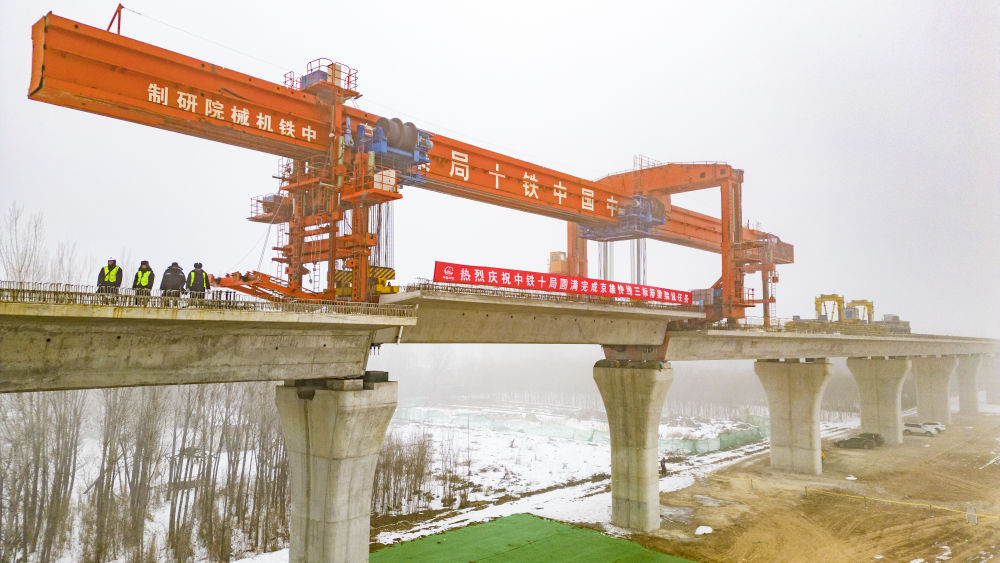 12月30日,在位于河北霸州經(jīng)濟(jì)開發(fā)區(qū)的雄安新區(qū)至北京大興國(guó)際機(jī)場(chǎng)快線(簡(jiǎn)稱“京雄快線”)橋梁工程施工現(xiàn)場(chǎng),最后一榀箱梁精準(zhǔn)入位。這標(biāo)志著京雄快線項(xiàng)目橋梁工程全線貫通。