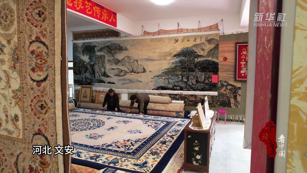 近年來,文安縣宮毯制作逐漸開始向精品化、藝術(shù)化轉(zhuǎn)型。圖案設計融合中國繪畫、刺繡、織錦以及建筑裝飾藝術(shù)于一體,產(chǎn)品包含地毯、臥毯、壁毯等多個品類。2016年,宮毯制作技藝入選河北省第六批省級非物質(zhì)文化遺產(chǎn)。