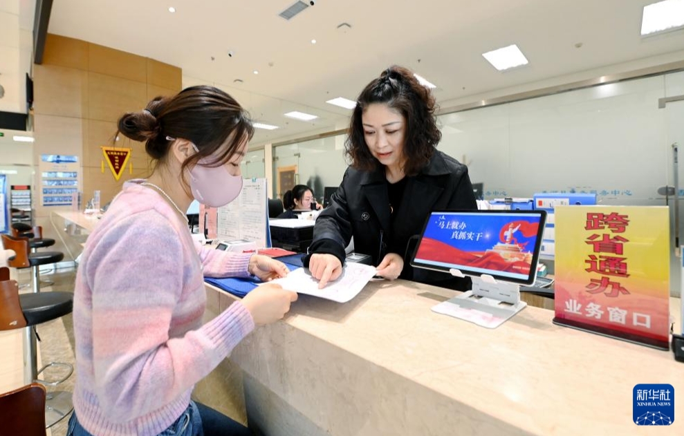 4月30日,工作人員(右)在位于香河縣的北京城市副中心政務(wù)服務(wù)中心一體化辦事大廳為市民辦理業(yè)務(wù)。