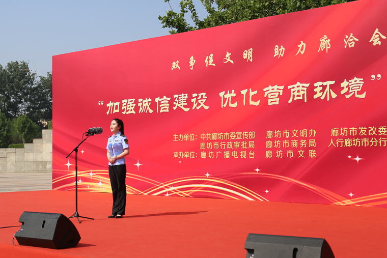 人無信不立,國無信不興。誠實(shí)守信是一個(gè)地方文明程度和營商環(huán)境的重要體現(xiàn),是實(shí)現(xiàn)長遠(yuǎn)發(fā)展的競爭力所在。在全市上下齊心協(xié)力做好廊洽會(huì)籌辦工作,以昂揚(yáng)奮進(jìn)的精神風(fēng)貌迎接廊洽會(huì)之際,按照全市“雙爭促文明 助力廊洽會(huì)”主題系列活動(dòng)總體部署,5月28日,由市委宣傳部、市文明辦、市發(fā)改委、市行政審批局、市商務(wù)局、人行廊坊市分行共同主辦的“加強(qiáng)誠信建設(shè) 優(yōu)化營商環(huán)境”宣傳展示活動(dòng),在市人民公園時(shí)代廣場東廣場舉行。此次活動(dòng)旨在展示近年來我市誠信建設(shè)成果,引導(dǎo)社會(huì)各界知信、用信、守信,打造一流營商環(huán)境,展示廊坊對(duì)外開放新形象,助力廊洽會(huì)勝利召開。