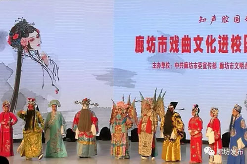 廊坊市管道局中學(xué)禮堂琴聲悠悠、掌聲陣陣。廊坊市戲曲文化進(jìn)校園啟動(dòng)儀式暨首場演出在這里舉行。上千名師生一起觀看了演出。“知聲腔國粹 愛家鄉(xiāng)文華”戲曲文化進(jìn)校園活動(dòng)由市委宣傳部、市文明辦、市文廣新局、市教育局、市財(cái)政局聯(lián)合主辦。