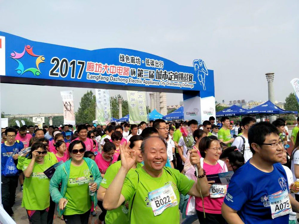 5月28日上午8:30,由共青團(tuán)廊坊市委、廊坊廣播電視臺、廊坊市體育局、廊坊市體育總會共同主辦,宇威體育發(fā)展有限公司和漢威企業(yè)管理咨詢有限公司承辦的2017“大中電器杯”第三屆城市定向挑戰(zhàn)賽在時代廣正式開賽,來自不同地區(qū),不同行業(yè)的2000余名選手從時代廣場奔向廊坊的四面八方,成為一道道靚麗的風(fēng)景。