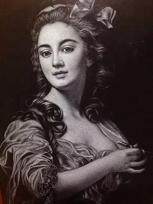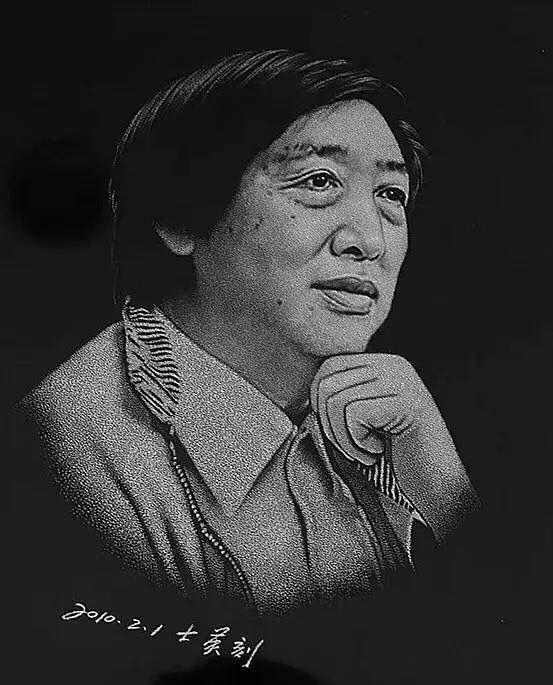 她說,人物的面部表情和立體感是靠黑白灰來體現(xiàn),黑白灰是靠手腕上的力度來掌握,力度的大小要用心和眼睛來控制,必須心手合一,恰到好處。每次做人物眼睛時(shí)必須全神貫注甚至是高度緊張,每個(gè)細(xì)節(jié)都必須是一氣呵成。稍有一丁點(diǎn)兒不慎,就嚴(yán)重影響了人物的面目表情,一旦出錯(cuò)便無法修補(bǔ)。