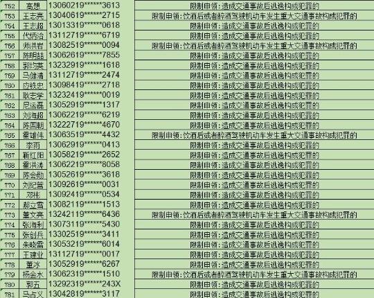 此次公布的被終生禁駕的781人中,有175人是因飲酒后或者醉酒駕駛機(jī)動(dòng)車(chē)發(fā)生重大交通事故構(gòu)成犯罪被終生禁駕,606人是因交通事故后逃逸構(gòu)成犯罪被終生禁駕。