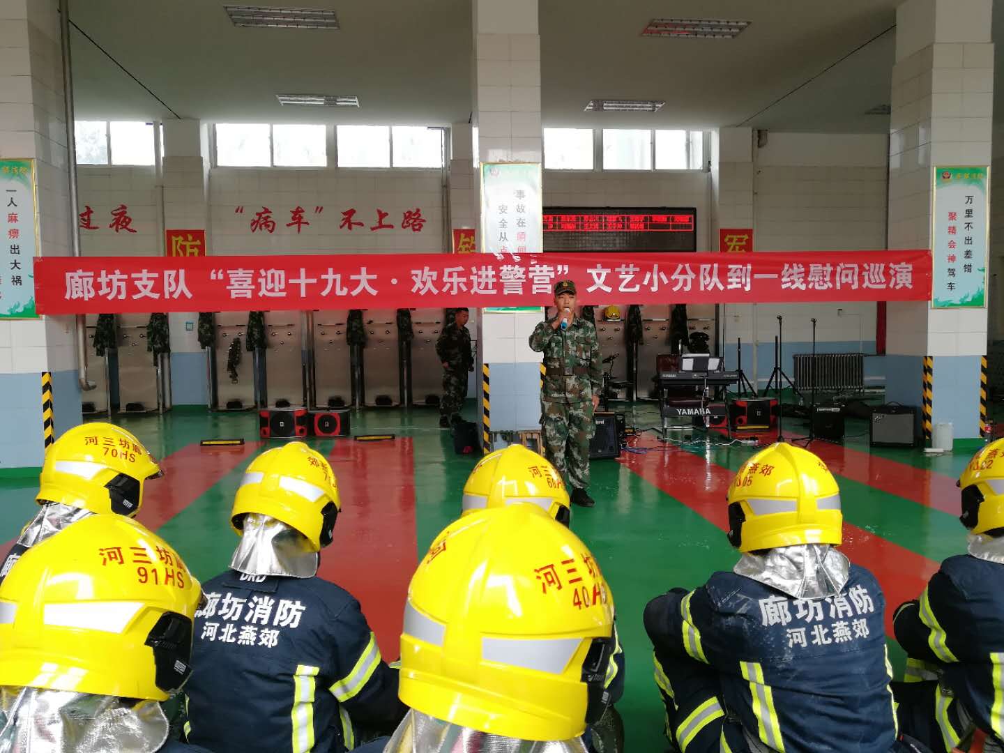 10月16日起,廊坊支隊(duì)組織開(kāi)展“喜迎十九大·歡樂(lè)進(jìn)警營(yíng)”文藝小分隊(duì)到一線(xiàn)慰問(wèn)巡演活動(dòng),把支隊(duì)黨委的關(guān)懷和慰問(wèn)傳達(dá)給連續(xù)奮戰(zhàn)在安保一線(xiàn)的全體消防官兵、文職人員和專(zhuān)職隊(duì)員,受到了基層官兵的熱烈歡迎。