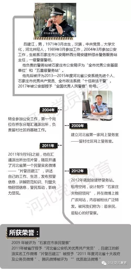 全國優(yōu)秀人民警察,石家莊市安建橋警務站主任呂建江2017年12月1日因病去世。