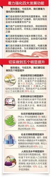兩大奮斗目標、四大發(fā)展功能和五個明顯提升,報告對今后五年奮斗目標和相關(guān)指標的設(shè)置,鼓舞人心。