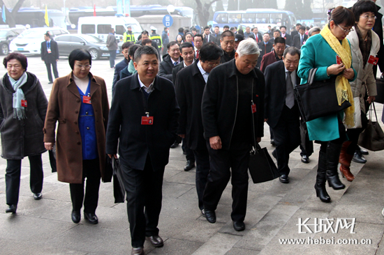 上午8時許,參加河北省第十二屆人民代表大會第五次會議開幕會議的代表委員有序入場。按照會議議程,今天上午,代表委員們將聽取和審議省長張慶偉代表省政府所作的政府工作報告。