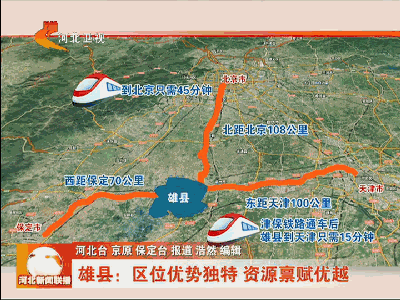 雄縣地處冀中平原,總面積524平方公里,北距北京108公里,東距天津100公里,西距保定70公里。地理位置的優(yōu)勢加上以縣城為中心,四縱五橫的公路交通網(wǎng),雄縣已經(jīng)融入京津城市大交通框架。從雄縣到北京只要45分鐘,津保鐵路通車后,雄縣到天津只需15分鐘。四通八達(dá)的交通網(wǎng)絡(luò)為雄安新區(qū)打造綠色交通體系奠定堅實基礎(chǔ)。