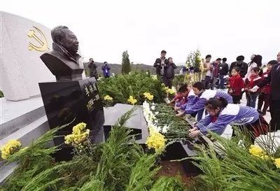 手持一束黃菊,向著墓碑深深鞠躬,未抬頭,淚水已涌出。