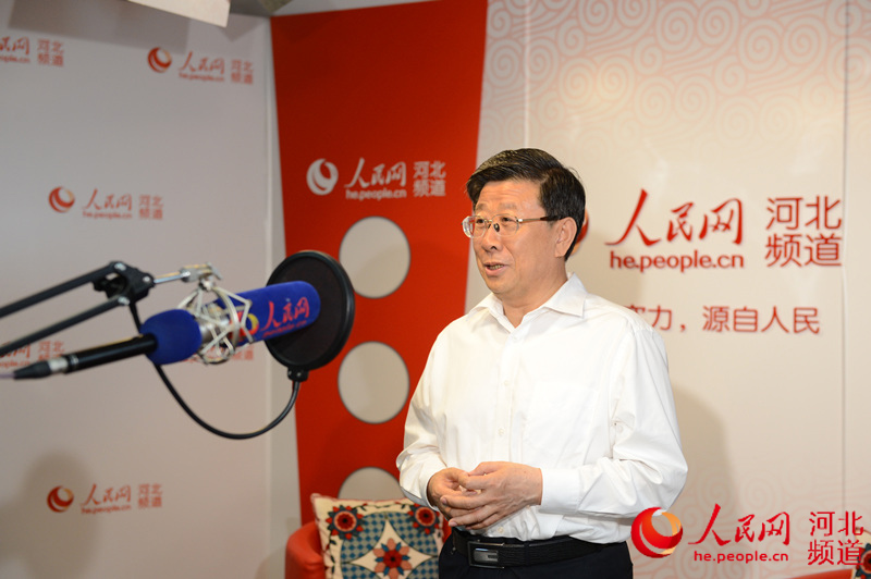 圖為趙克志書記在人民網(wǎng)河北頻道演播室與新媒體記者互動交流。張夢琪 攝
