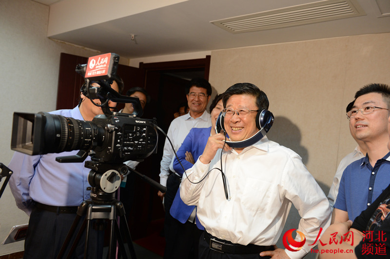 圖為趙克志書記在人民網(wǎng)河北頻道演播室向人民日報讀者和人民網(wǎng)網(wǎng)友問好。張夢琪 攝