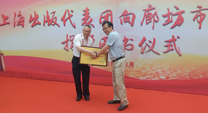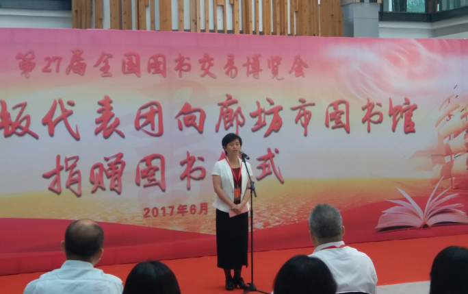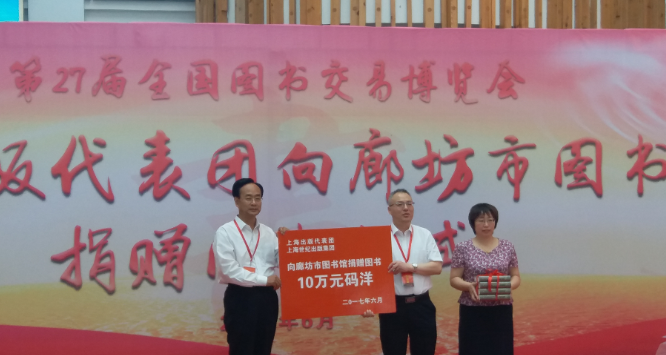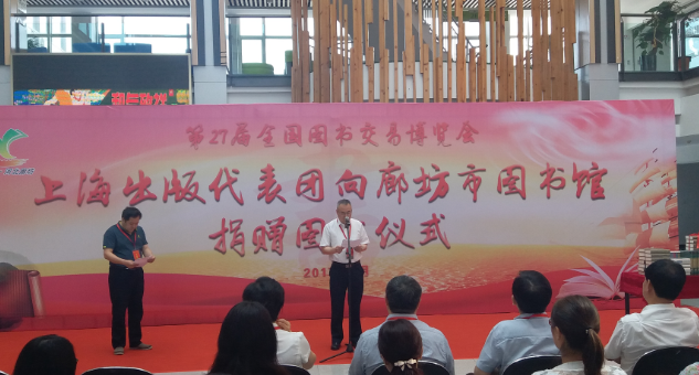 6月1日,也是在第27屆全國圖書交易博覽會舉辦期間,上海市出版界45家出版社向廊坊圖書館捐贈圖書儀式在廊坊市圖書館成功舉辦。
