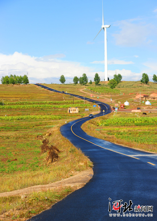 在壩上草原,一條全長(zhǎng)132.7公里的雙向兩車道縣級(jí)公路,把張北、崇禮、萬全大大小小近20個(gè)景點(diǎn)連成了串兒,在不到五年的時(shí)間里揚(yáng)名全國(guó),成為帶動(dòng)壩上17個(gè)鄉(xiāng)鎮(zhèn)、80多個(gè)村、10多萬農(nóng)民致富的草原天路……