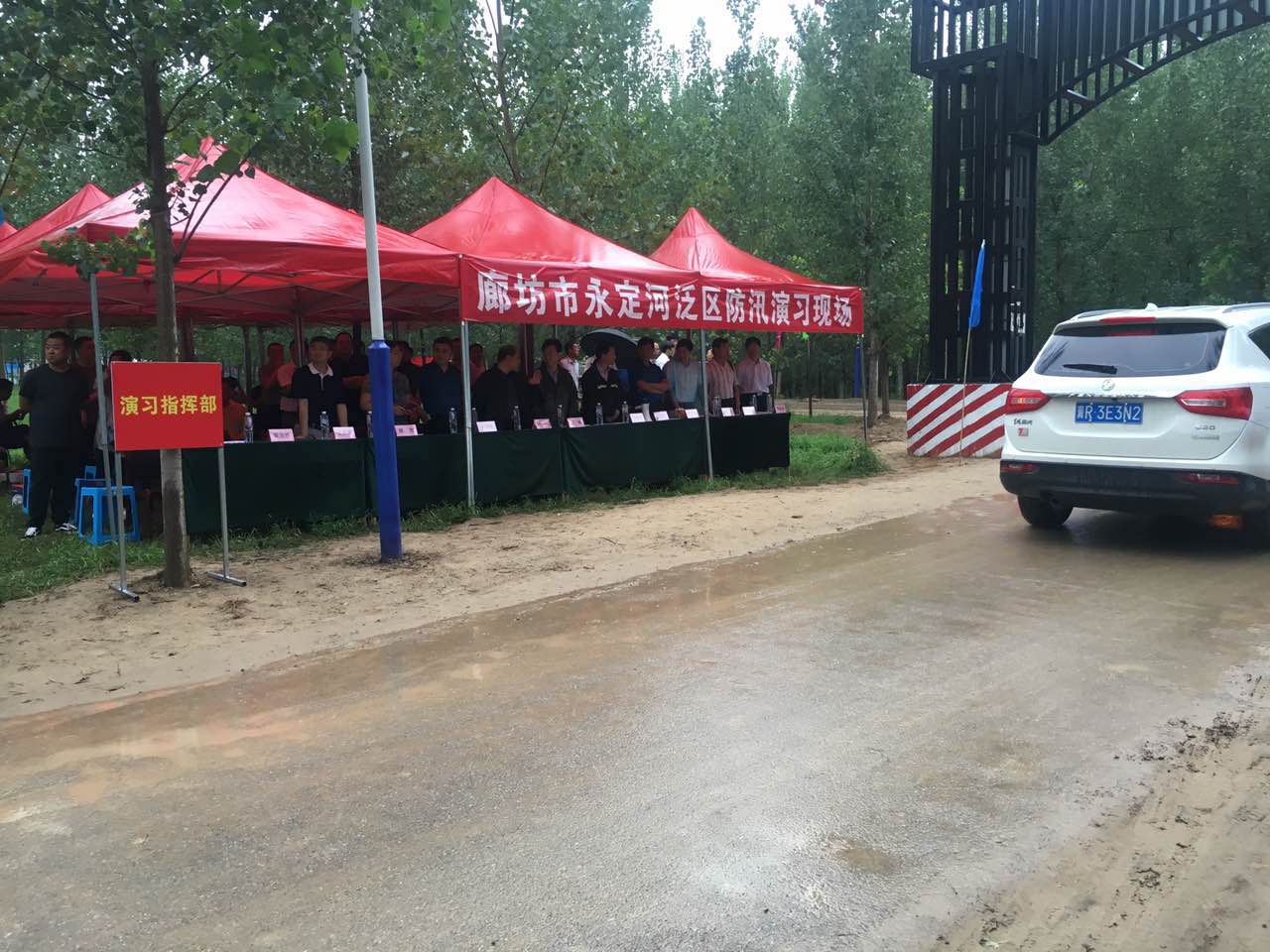 上午8:00,張秉舜宣布廊坊市防汛演練暨永定河泛區(qū)群眾轉(zhuǎn)移安置演習(xí)正式開始。演練假設(shè)永定河山峽地區(qū)降特大暴雨,盧溝橋洪峰出現(xiàn)在當(dāng)日凌晨2時,洪水將在14時進入泛區(qū)。這股洪水將淹及永定河泛區(qū)北圍埝以南、北遙堤以北的村莊。安次區(qū)防汛抗旱指揮部決定,安次區(qū)進入緊急防汛期,西張務(wù)村立即轉(zhuǎn)移。楊稅務(wù)鄉(xiāng)西張務(wù)村接到轉(zhuǎn)移命令后,村廣播站立即用高音嗽叭循環(huán)廣播,同時通過敲鑼和防空警報,通知村民按預(yù)案開始做轉(zhuǎn)移準(zhǔn)備,不到一個小時,該村700多名群眾全部成功轉(zhuǎn)移。