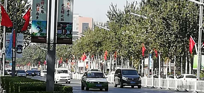 記者行走在廣陽道上看到,每隔幾十米的路燈燈柱上就懸掛著兩面五星紅旗,原本“冷冰冰”的鐵桿上鮮艷的五星紅旗迎風(fēng)飄揚(yáng),在綠樹的映襯下形成了一道靚麗的風(fēng)景線。按照市委、市政府關(guān)于《國慶期間廣泛開展“升國旗、唱國歌祖國在我心中主題活動實(shí)施方案”》的工作安排,從27日起,市政處集中利用兩天時間,將廣陽道(東安路——西昌路)、銀河路(金光道——北鳳道)作為“國旗示范街”路段進(jìn)行重點(diǎn)打造,在這兩條路路燈燈桿懸掛國旗1000面,喜迎國慶。一面面鮮紅的國旗為即將到來的國慶節(jié)增添了濃濃的喜慶氛圍,以此燃起人們心頭濃濃的愛國情意。
