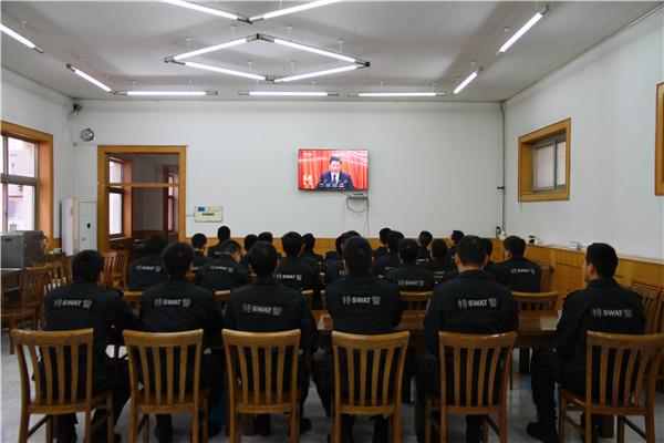 特警、治安、巡警、交警等各警種在保持正常值勤警力的情況下,積極組織備勤警力集中收聽(tīng)收看黨的十九大開(kāi)幕式實(shí)況。同志們滿懷激情,廣大公安民警紛紛表示:黨的十九大的勝利召開(kāi),令人振奮,催人奮起,一定按照習(xí)總書記“對(duì)黨忠誠(chéng)、服務(wù)人民、執(zhí)法公正、紀(jì)律嚴(yán)明”十六字重要指示為遵循,牢固樹立“四個(gè)意識(shí)”,以無(wú)比堅(jiān)定的決心、無(wú)比扎實(shí)的作風(fēng)、無(wú)比嚴(yán)密的措施,再創(chuàng)新業(yè)績(jī),展示新形象,擔(dān)當(dāng)好人民公安的職責(zé)使命,不絕辜負(fù)黨和人民的重托和期望,為社會(huì)穩(wěn)定和經(jīng)濟(jì)建設(shè)保駕護(hù)航再鼓干勁,向黨和人民再立新功。