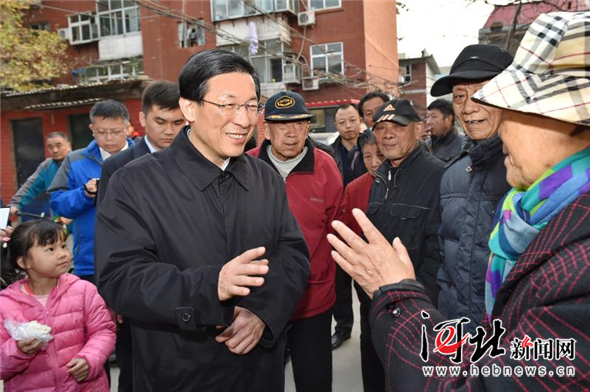 11月8日下午,省委書(shū)記王東峰到石家莊進(jìn)行調(diào)研暗訪。這是王東峰在棉五社區(qū)與群眾親切交流,宣講黨的十九大精神,詢(xún)問(wèn)群眾所需所盼。 趙威 攝