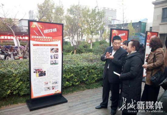“在學習宣傳貫徹黨的十九大精神中,我們采用‘六個帶動’即:一個黨員帶動一個支部、一個老師帶動一個學校、一個孩子帶動一個家庭、一個志愿者帶動一個企業(yè)、一支文體隊伍帶動一個小區(qū)、一個居民帶動一個朋友圈的工作方法,同時制作了‘精讀十九大報告’和‘砥礪奮進五年成果展’系列展板,在各小區(qū)巡回展出,增強了宣傳效果。”王海濤說。