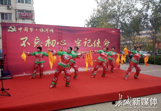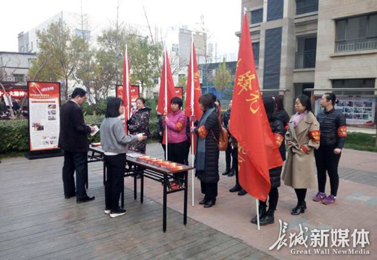 “黨的十九大勝利召開后,我們堅持創(chuàng)新載體,從細微做起,著力在基層宣傳思想文化工作上打造新亮點:社區(qū)采用‘兩發(fā)一組’的工作方法,將社區(qū)黨員、居民、企事業(yè)單位、文體團隊發(fā)展成為志愿者,并將志愿者發(fā)展成為宣傳員。在宣傳員中,我們又分類組建了5支宣傳隊伍,成立了以文藝骨干為主體的‘舞動人生宣傳隊’,以社區(qū)黨員為主體的‘先鋒先行宣傳隊’,以教師為主體的‘春風化雨宣傳隊’,以共建單位為主體的‘雷鋒精神宣傳隊’,以未成年人為主體的‘小豆丁宣傳隊’。”11月9日早上7時,在廊坊市安次區(qū)億合社區(qū)豪邸坊小區(qū),參加廊坊市基層宣傳工作交流推進會的與會代表一邊認真觀摩,一邊仔細聆聽該社區(qū)黨支部書記王海濤講解的基層宣傳工作經驗做法。