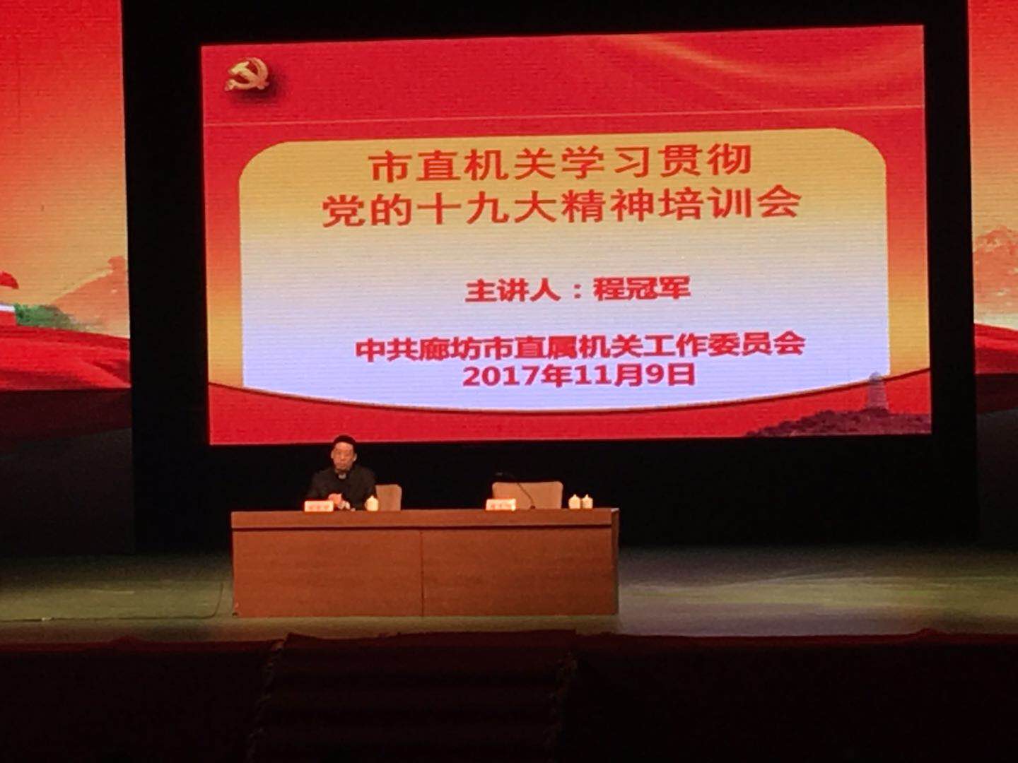 11月9日, 市直機(jī)關(guān)工委舉辦學(xué)習(xí)貫徹黨的十九大精神專題培訓(xùn)會(huì)。市直各機(jī)關(guān)黨委書(shū)記、專職副書(shū)記(黨辦室主任),市直機(jī)關(guān)各單位黨委所屬黨總支、黨支部書(shū)記,理論骨干1000多人參加此次培訓(xùn)會(huì)。