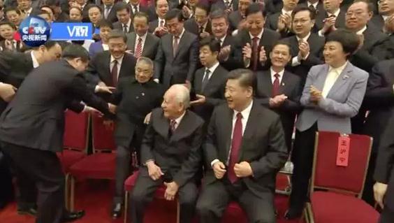 做夢(mèng)也沒想到,習(xí)總書記竟然會(huì)把我請(qǐng)下來,坐在他旁邊,而且還把板凳給我拉過來,叫我坐下來……我激動(dòng)得一時(shí)也不曉得要講什么話。尊重科學(xué),尊重科技人員,尊重老人,今天給我的印象特別深。