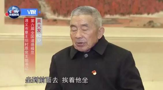 看到93歲的中船重工719研究所名譽(yù)所長(zhǎng)黃旭華、82歲的貴州省遵義市播州區(qū)平正仡佬族鄉(xiāng)草王壩村原黨支部書記黃大發(fā)兩位全國道德模范代表年事已高,站在代表們中間,習(xí)近平握住他們的手,請(qǐng)他們坐到自己身旁。兩人執(zhí)意推辭,總書記一再邀請(qǐng),最后兩人在總書記身邊坐下。