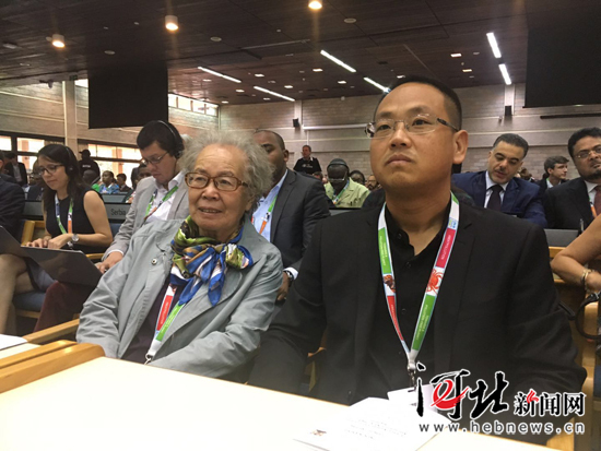 受邀參加會(huì)議的河北塞罕壩林場(chǎng)代表陳彥嫻和于士濤在聆聽大會(huì)發(fā)言。