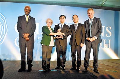 頒發(fā)“地球衛(wèi)士獎(jiǎng)”是聯(lián)合國(guó)第三屆環(huán)境大會(huì)的一個(gè)重要環(huán)節(jié)。該獎(jiǎng)創(chuàng)立于2004年,每年評(píng)選一次,頒發(fā)給世界各地在環(huán)境領(lǐng)域有杰出貢獻(xiàn)的個(gè)人或組織。在今年的“地球衛(wèi)士獎(jiǎng)”各個(gè)獎(jiǎng)項(xiàng)中,中國(guó)摩拜單車公司獲得“商界卓識(shí)獎(jiǎng)”,中國(guó)億利資源集團(tuán)董事長(zhǎng)王文彪獲得“終身成就獎(jiǎng)”。