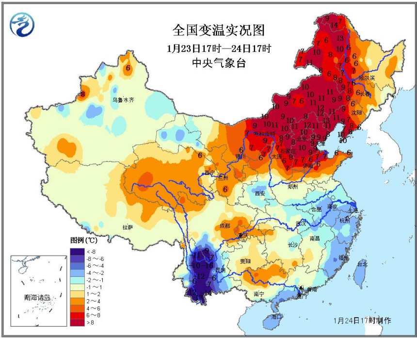 隨著冷空氣主體移動(dòng)到南方,從今天開始,我國北方大部地區(qū)出現(xiàn)明顯回暖;今17時(shí)較昨17時(shí),內(nèi)蒙古地區(qū)大部、華北、東北等地氣溫普遍回升8~10℃,局地升溫幅度達(dá)12~14℃。