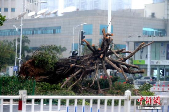 9月16日,廈門街頭隨處可見被“莫蘭蒂”臺(tái)風(fēng)連根拔起的大樹。在“莫蘭蒂”影響下,廈門有35萬棵行道樹倒伏,房屋倒塌損壞113處。 中新社記者 王東明 攝