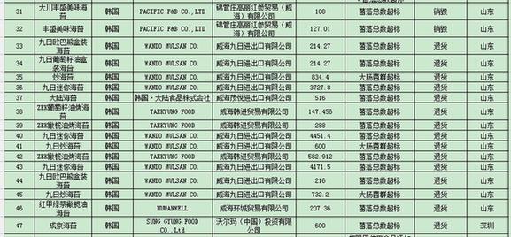 名單還顯示,24批未予準入的韓國食品存在菌落總數(shù)超標的情況。其中由沃爾瑪(中國)投資有限公司進口的1批成京海苔和1批花泉山藥藜麥米南瓜玉米粉;由山東神威海韓進貿(mào)易有限公司進口的1批ZEK葡萄籽油烤海苔和2批ZEK橄欖油烤海苔。