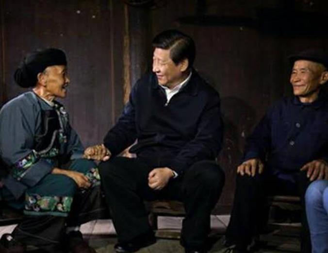 2013年11月,習(xí)近平在湖南省湘西土家族苗族自治州花垣縣排碧鄉(xiāng)十八洞村考察。這是他在苗族村民施齊文家中同一家人促膝交談。(圖片來源:新華社)