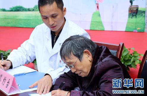 2016年11月11日,重慶沙坪壩區(qū)新橋社區(qū)衛(wèi)生服務(wù)中心集中舉辦“家庭醫(yī)生”服務(wù)簽約儀式。圖為居民代表簽約家庭醫(yī)生現(xiàn)場。(圖片來源:新華網(wǎng))