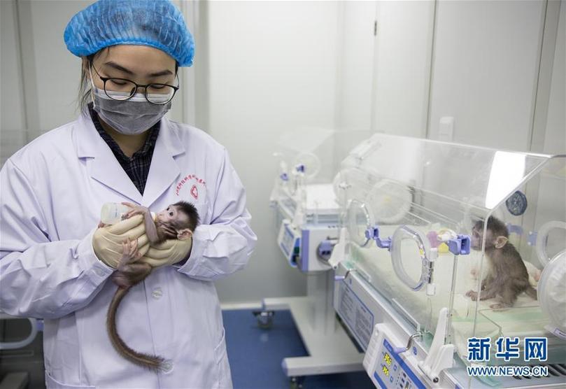 克隆猴“中中”和“華華”在中科院神經(jīng)科學(xué)研究所非人靈長(zhǎng)類(lèi)平臺(tái)育嬰室的恒溫箱里得到精心照料