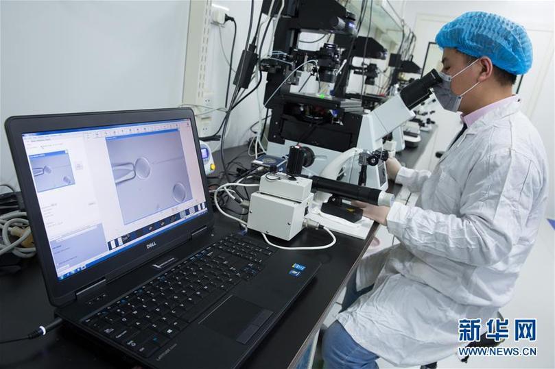 在中科院神經(jīng)科學(xué)研究所非人靈長(zhǎng)類(lèi)平臺(tái)實(shí)驗(yàn)室,劉真博士借助顯微設(shè)備對(duì)卵母細(xì)胞進(jìn)行“去核”操作