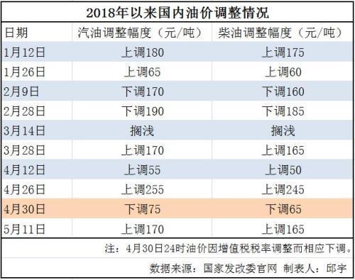 若本次實(shí)現(xiàn)上調(diào),2018年的調(diào)價(jià)格局將變?yōu)?ldquo;七漲三跌一擱淺”。國內(nèi)油價(jià)每十個(gè)工作日一調(diào),值得注意的是,4月30日24時(shí)追加了一次調(diào)整,這是因?yàn)樵鲋刀惗惵收{(diào)整,進(jìn)而下調(diào)了油價(jià)。