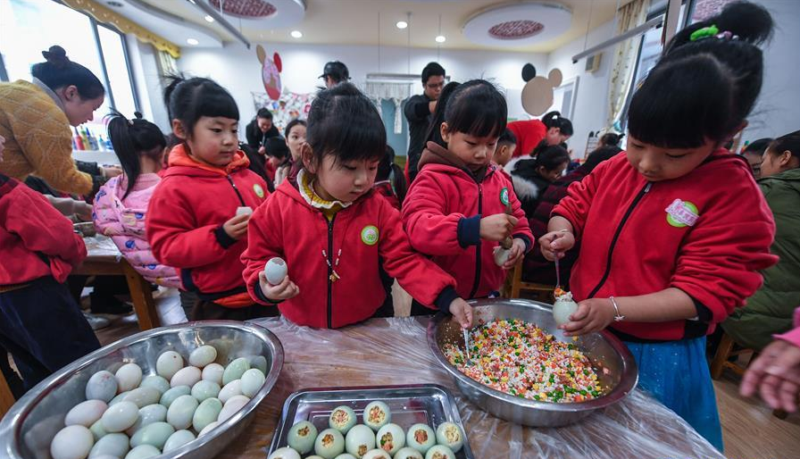 在小雪節(jié)氣即將到來前,浙江省長興縣李家巷鎮(zhèn)中心幼兒園的孩子們在老師的帶領下,用大米、糯米、玉米、南瓜、赤豆、咸鴨蛋等農(nóng)產(chǎn)品親手制作竹筒飯、八寶糕、糯米團、糖葫蘆等,讓孩子們在制作傳統(tǒng)美食的過程中了解節(jié)氣文化,在歡樂的氣氛中迎接小雪節(jié)氣的到來。