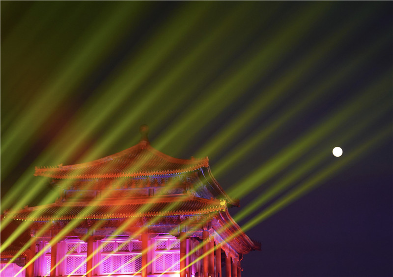 2月19日晚拍攝的故宮午門角樓與圓月。新華社記者 陳建力 攝