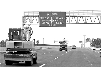 大興機場高速將于6月底建成,工人正在進行收尾工作 攝影/本報記者 黃亮