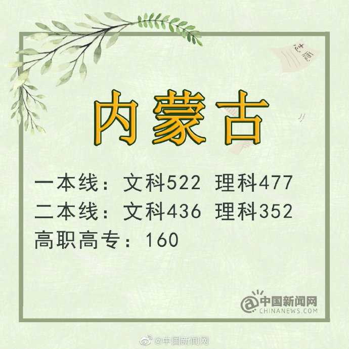 內蒙古:文科一本線522分 理科477分