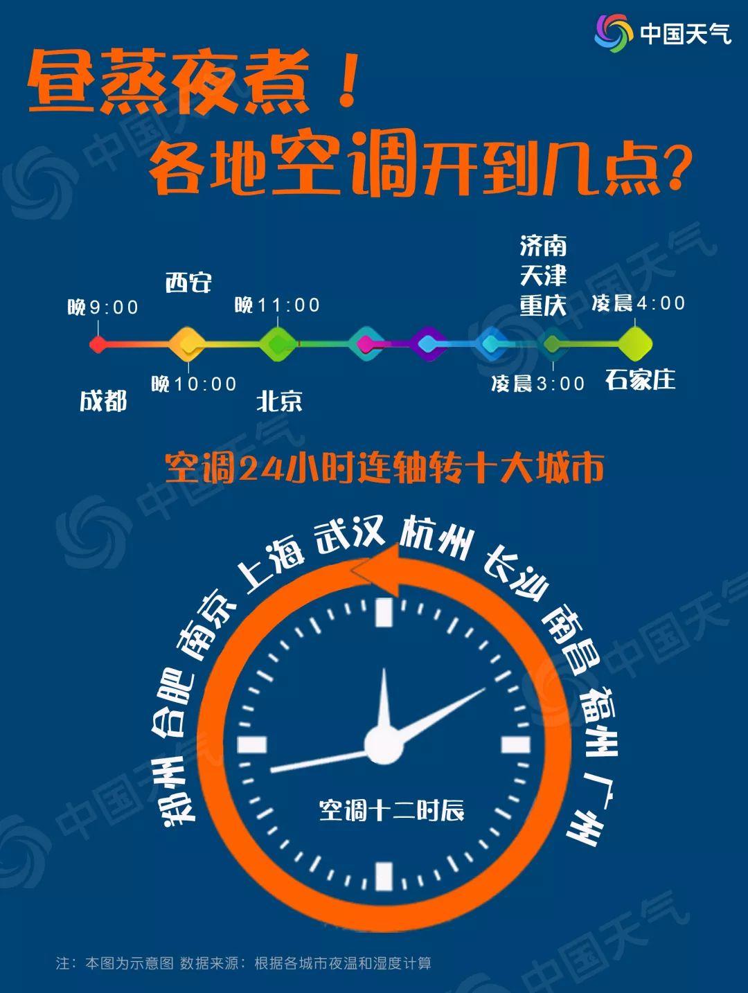 重慶、天津、濟南、石家莊夜間氣溫在27-30℃之間,空調(diào)至少要開到凌晨3-4點;